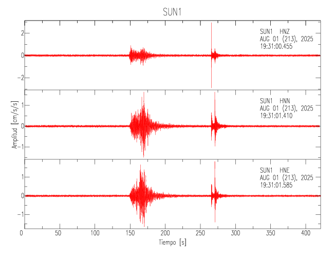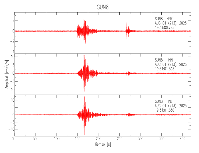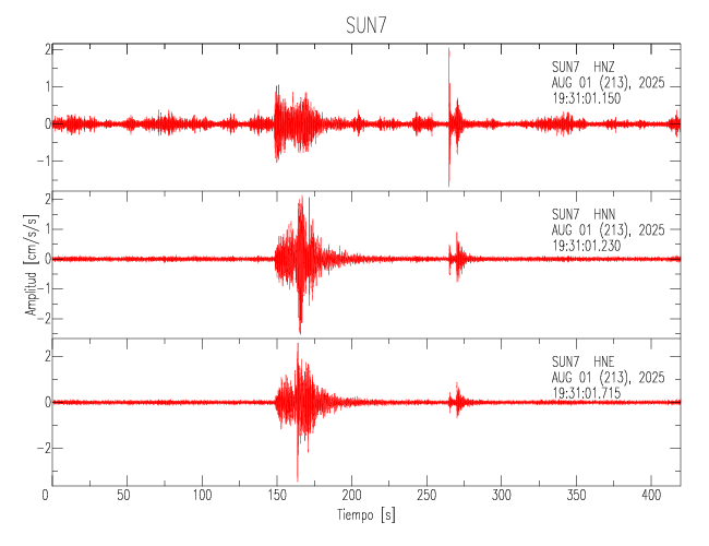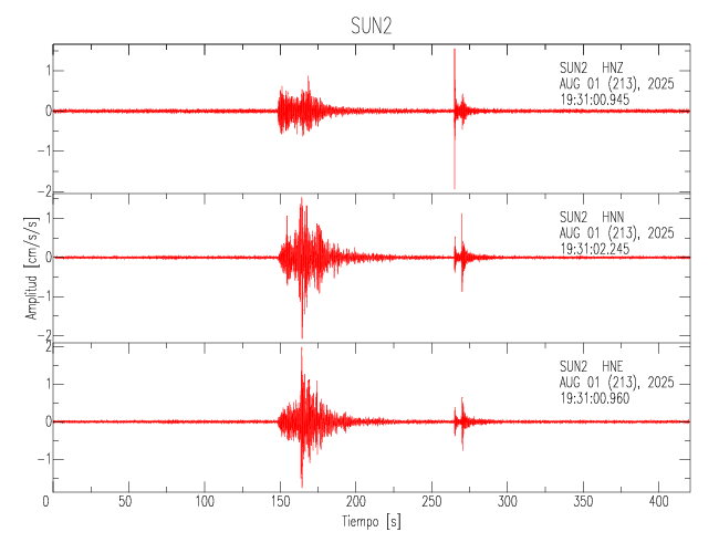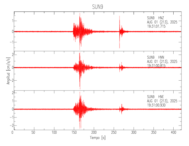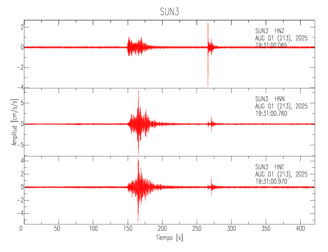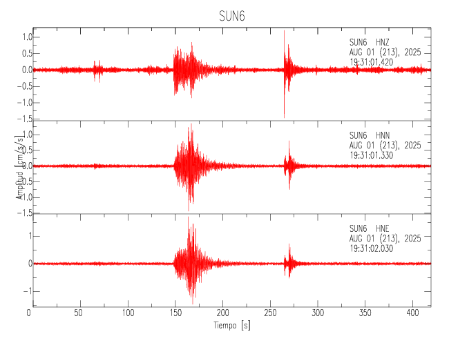 Gráficos de las trazas de aceleración en las 3 componentes: LONGITUDINAL, TRANSVERSAL y VERTICAL de cada uno de los sitios de la Sede Central.