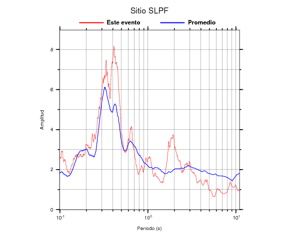 mayores a 0.4 s). En este informe se grafica tanto el efecto de sitio del sismo registrado como el valor promedio en cada estación. El ajuste no debe ser exacto ya que el valor promedio es más representativo de la respuesta del suelo que un solo evento. Sin embargo, se deben notar características generales como máximos y mínimos de amplificación aproximadamente en los mismos valores de período. |