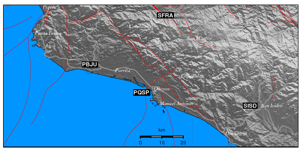 del LIS en todo el país. Las estaciones que registraron el sismo
