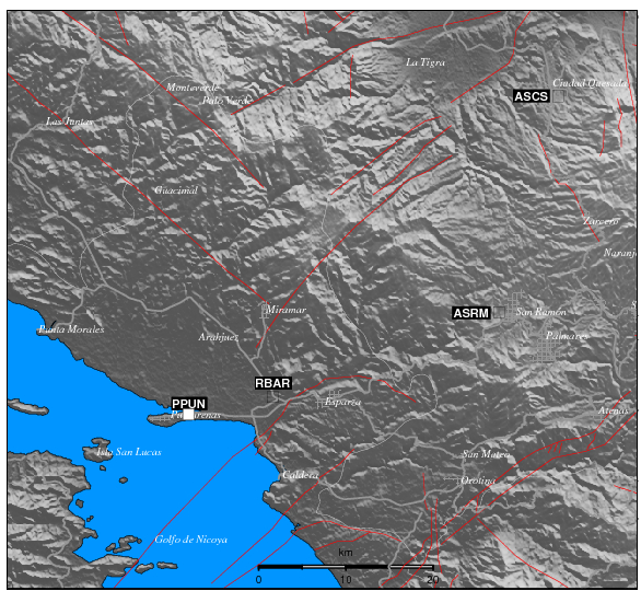 al oeste del Valle Central (Alajuela, Heredia, San José, Puriscal) |