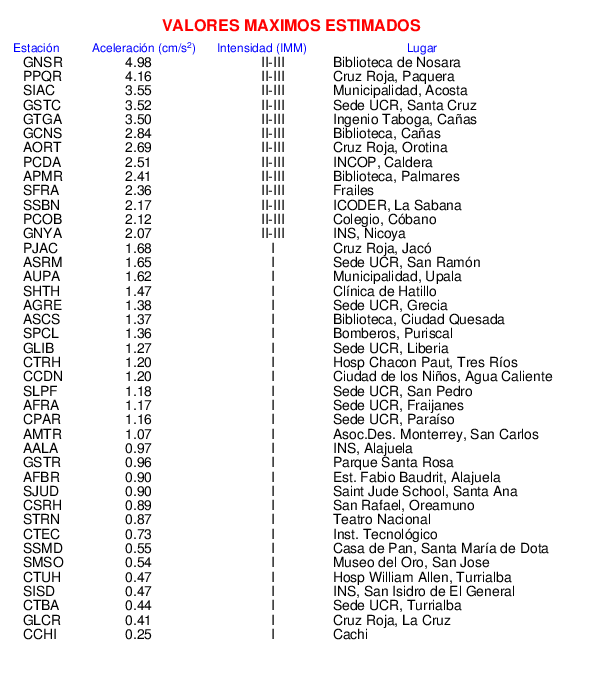 planeadas; rotura de algunas chimeneas. Estimado por las personas