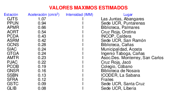 planeadas; rotura de algunas chimeneas. Estimado por las personas