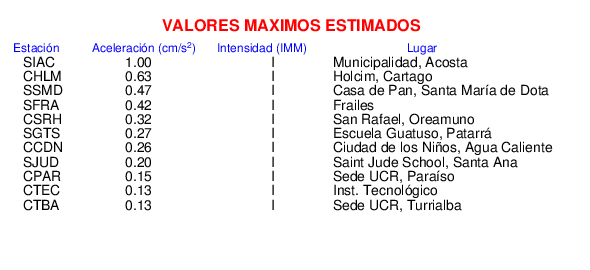 planeadas; rotura de algunas chimeneas. Estimado por las personas