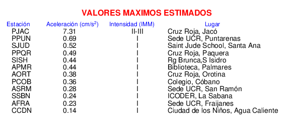 planeadas; rotura de algunas chimeneas. Estimado por las personas