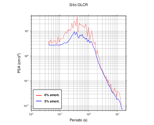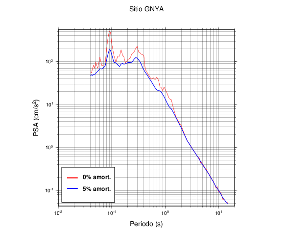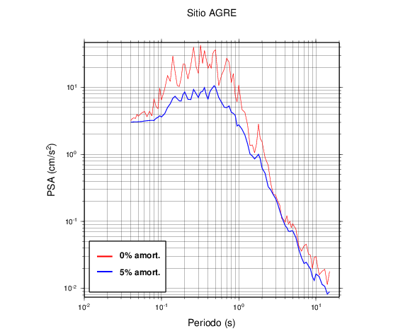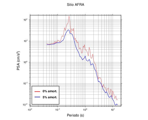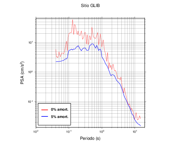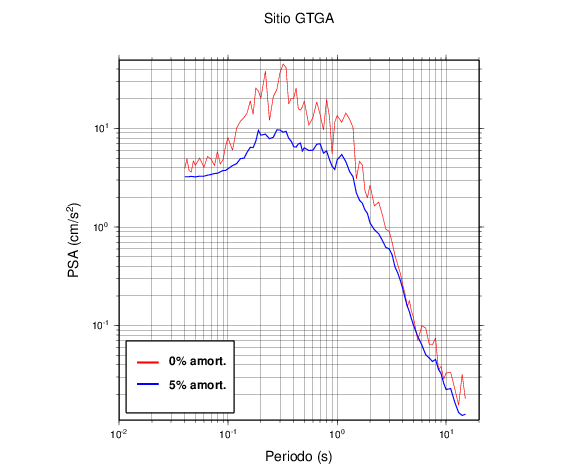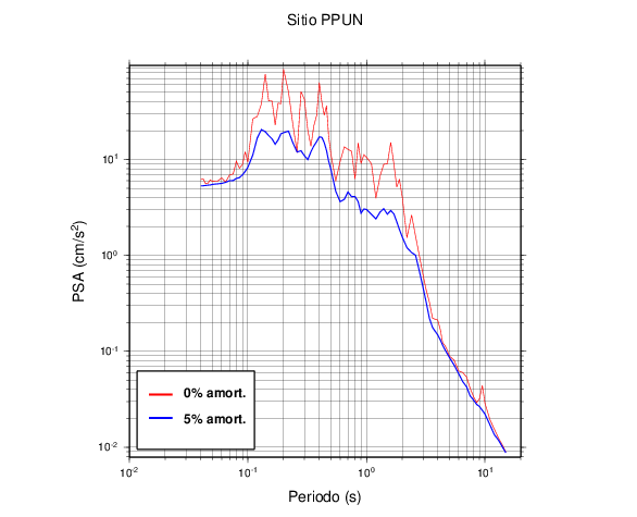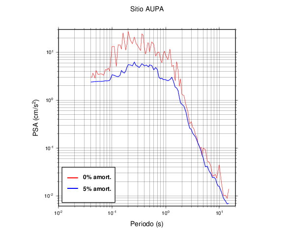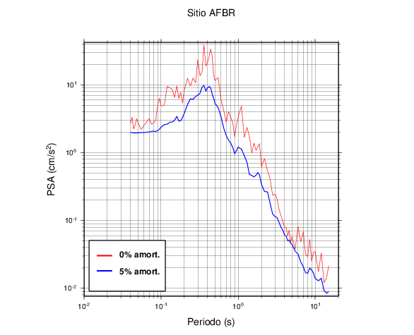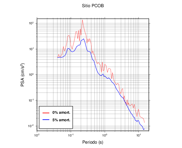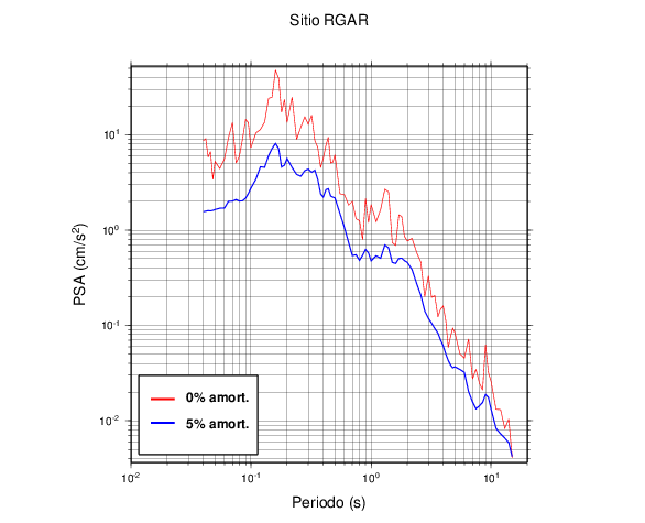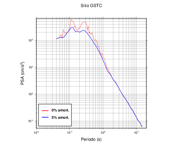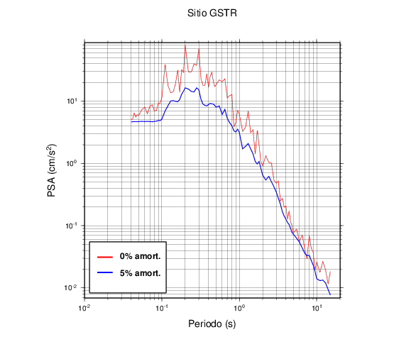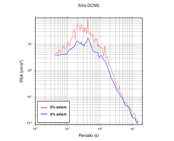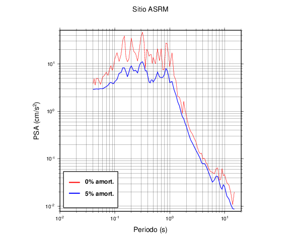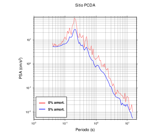 Uno de los principales usos de los datos acelerográficos es precisamente para calcular dichos espectros y en este caso se presentan los mismos para cada estación acelerográfica solo en la componente NS para el 0% y 5% de amortiguamiento.