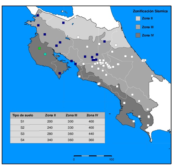 acuerdo con el Código Sísmico de Costa Rica 2010, Costa Rica se divide