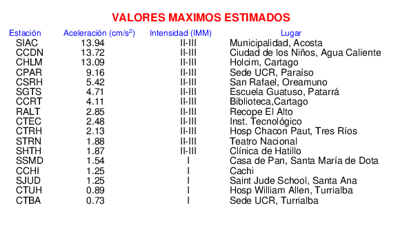 planeadas; rotura de algunas chimeneas. Estimado por las personas