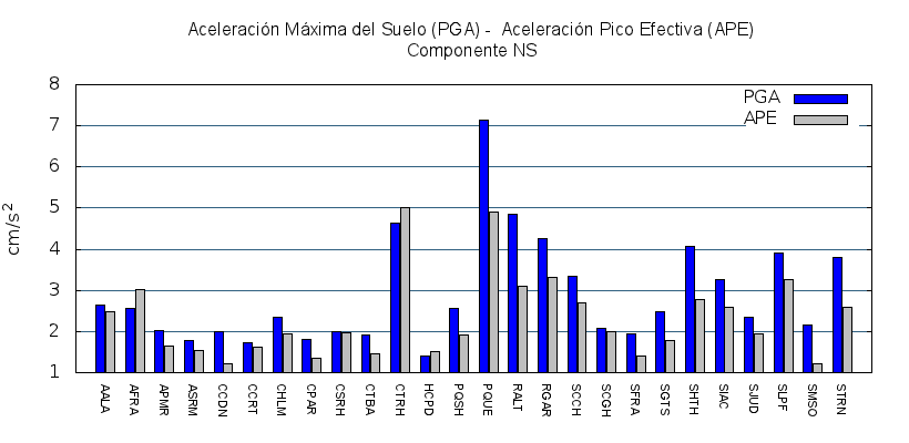 Mapa de Aceleración Pico Efectiva en la componente NS