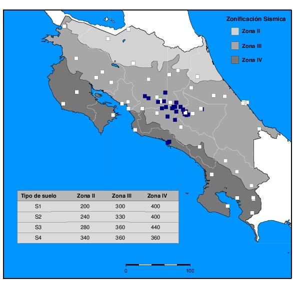 acuerdo con el Código Sísmico de Costa Rica 2010, Costa Rica se divide