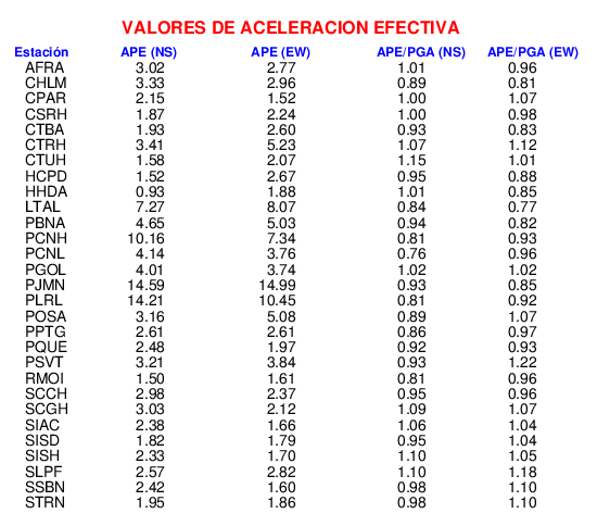 Uno de esos parámetros es la aceleración pico efectiva (APE), que se