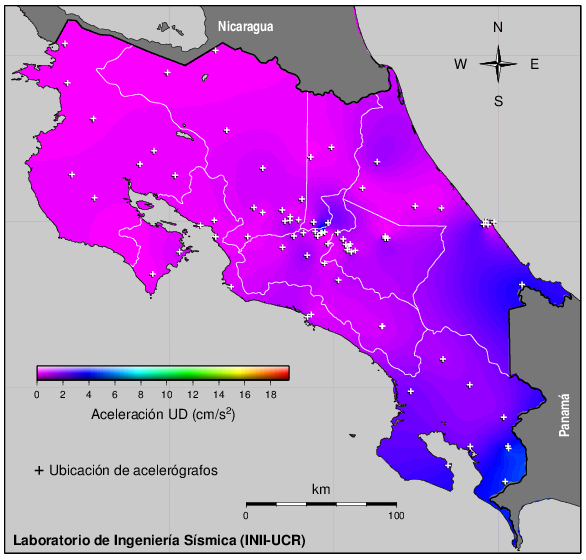 ISOACELERACION COMPONENTE VERTICAL: El siguiente mapa muestra los valores de aceleración interpolados de la componente VERTICAL.