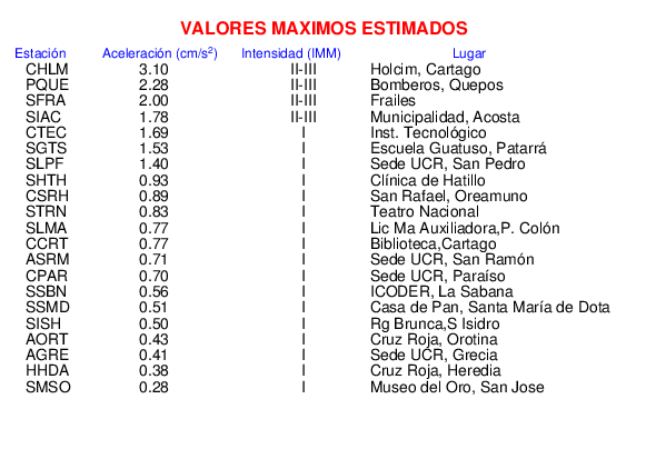 planeadas; rotura de algunas chimeneas. Estimado por las personas