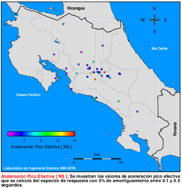 Mapa de Aceleración Pico Efectiva en la componente NS