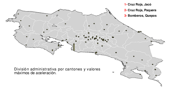 Los mapas de las fallas activas fueron realizados digitalizando las trazas del Atlas Tectónico de Costa Rica y de diversas publicaciones de la Revista Geológica de América Central.