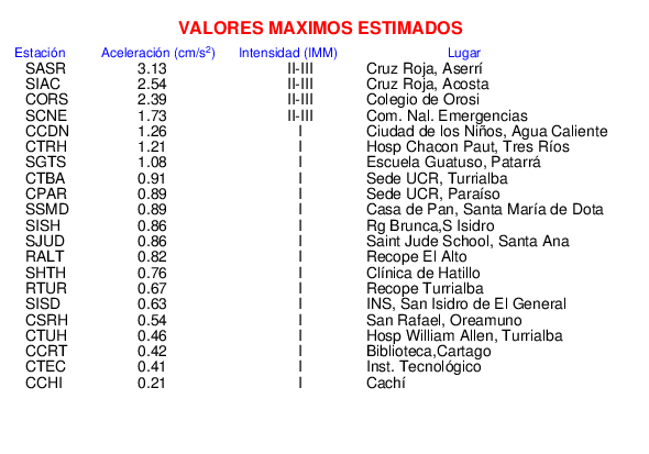 planeadas; rotura de algunas chimeneas. Estimado por las personas