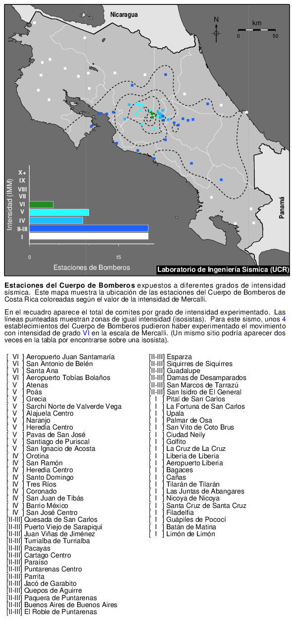 Impacto sobre establecimientos del Cuerpo de Bomberos de Costa Rica |