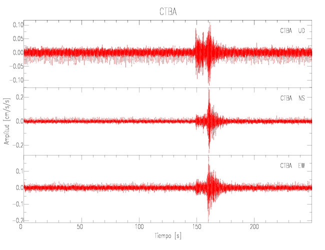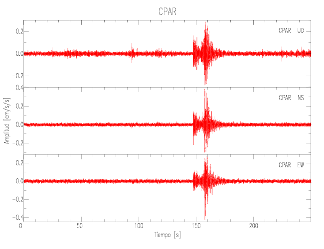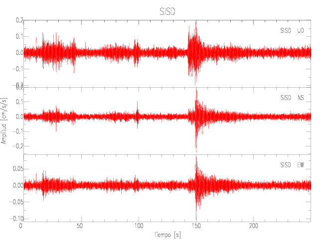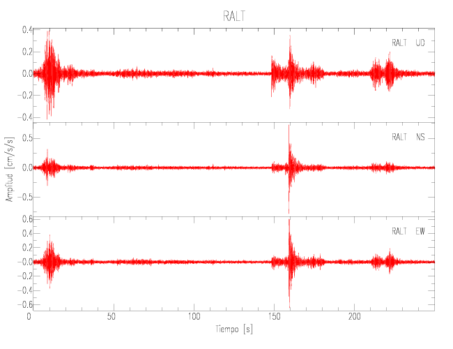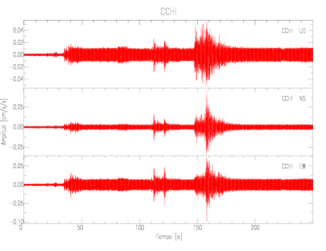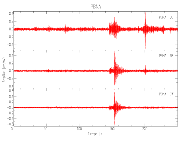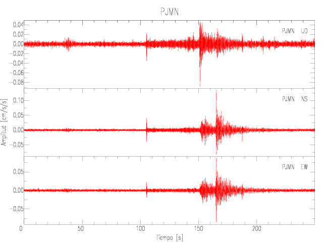 Gráficos de las componentes de aceleración para sitios con PGA > 2 cm/s2