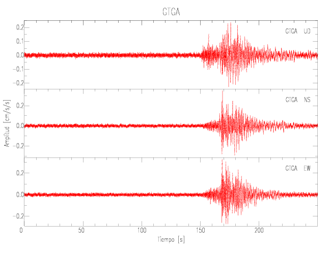 Gráficos de las componentes de aceleración para sitios con PGA > 2 cm/s2