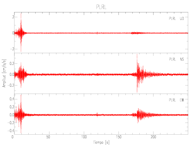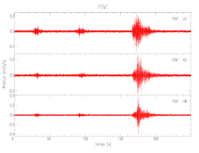 Gráficos de las componentes de aceleración para sitios con PGA > 2 cm/s2