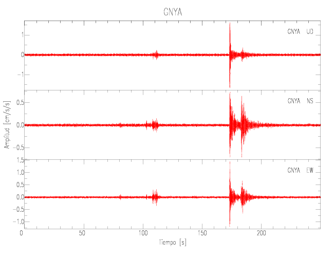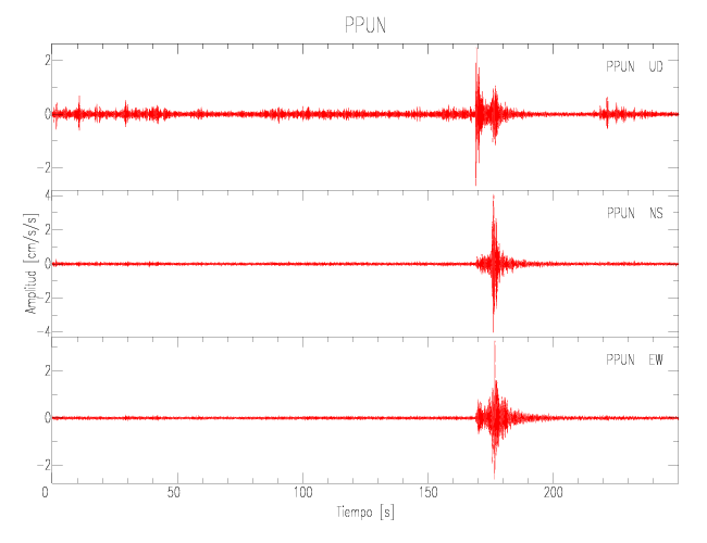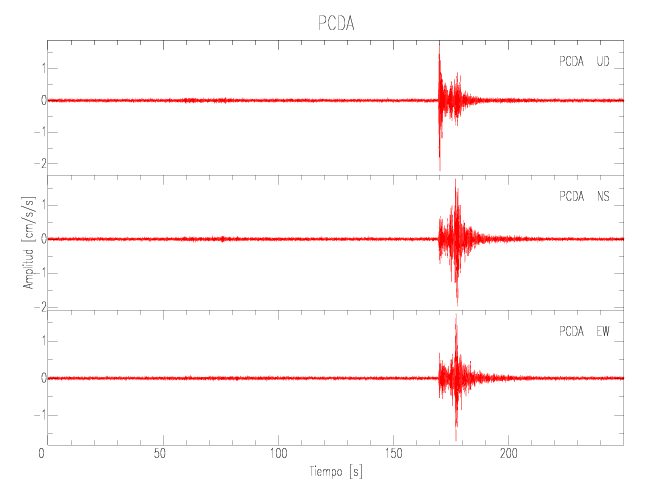 Gráficos de las componentes de aceleración para sitios con PGA > 2 cm/s2