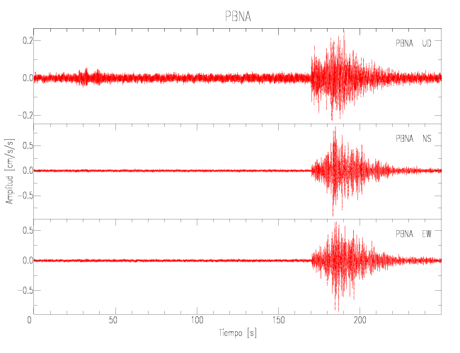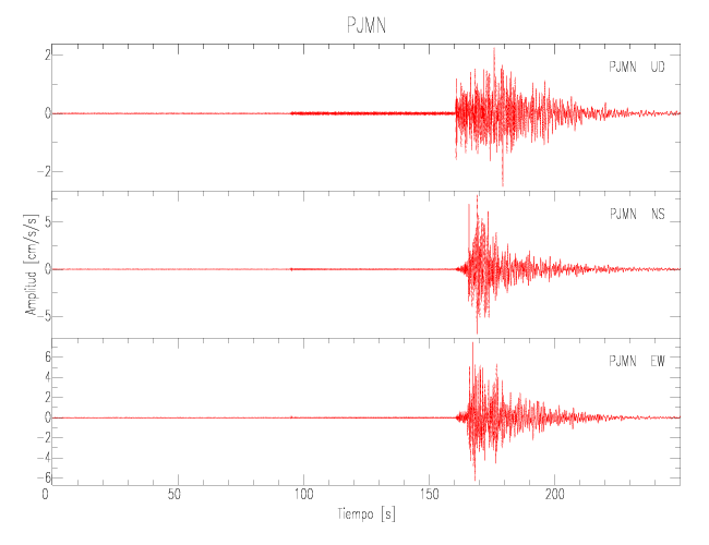 Gráficos de las componentes de aceleración para sitios con PGA > 2 cm/s2