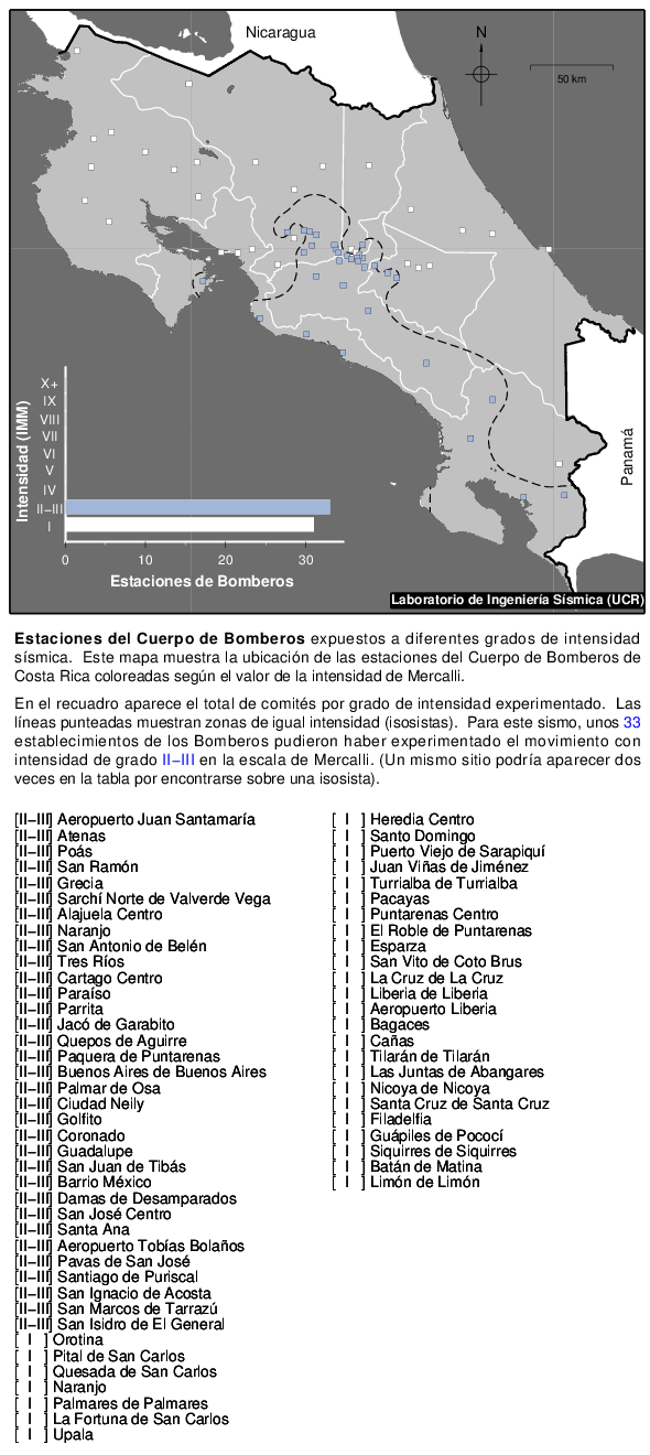 Este mapa se obtiene de las mediciones directas de aceleración máxima de los registros acelerográficos. Los datos de cada punto son interpolados y asociados a los correspondientes valores de intensidad sísmico en la escala de Mercalli.