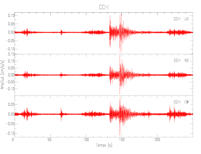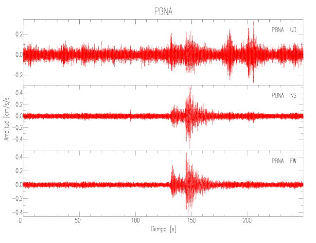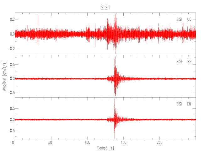 Gráficos de las componentes de aceleración para sitios con PGA > 2 cm/s2