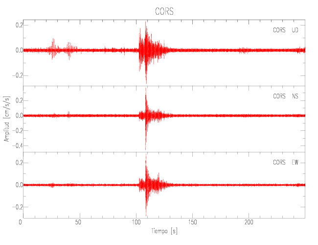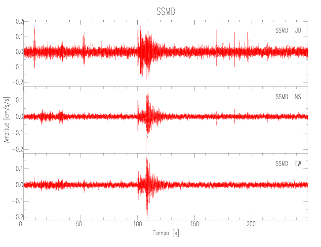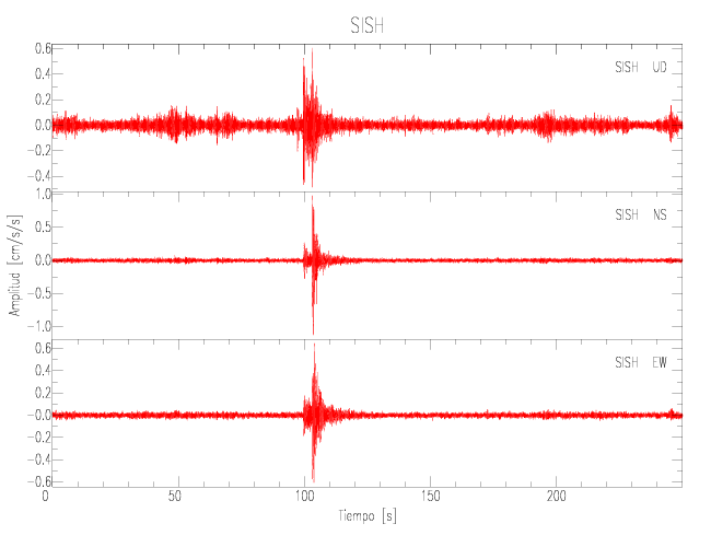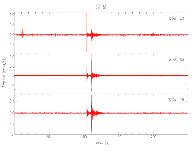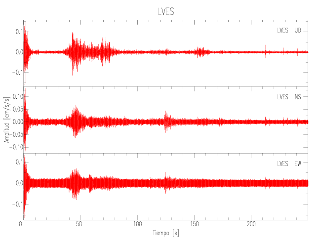 Gráficos de las componentes de aceleración para sitios con PGA > 2 cm/s2