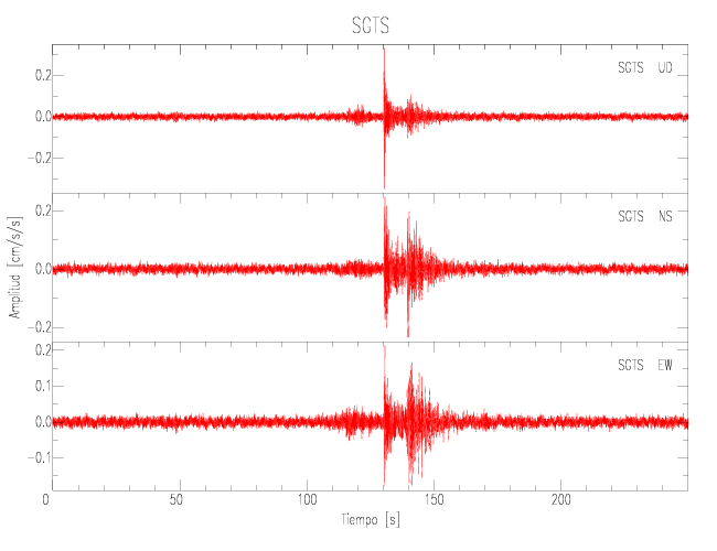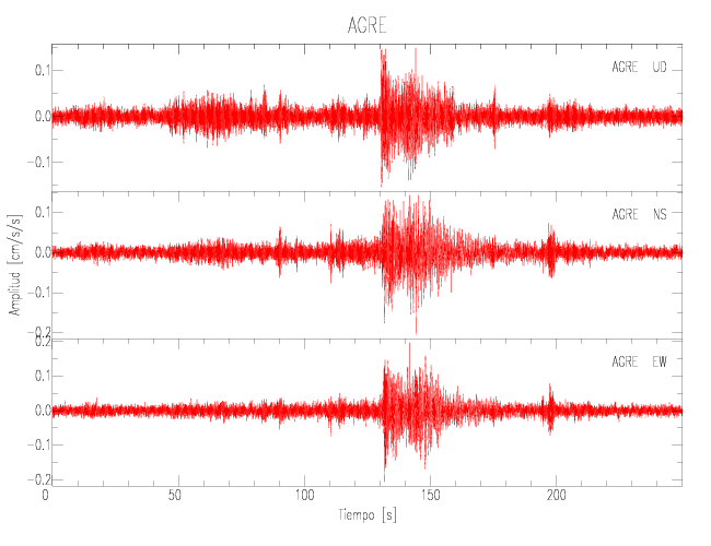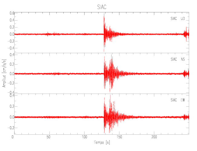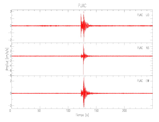 Gráficos de las componentes de aceleración para sitios con PGA > 2 cm/s2