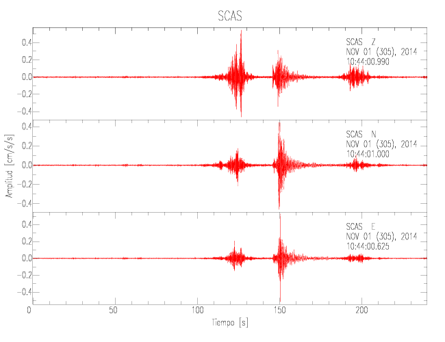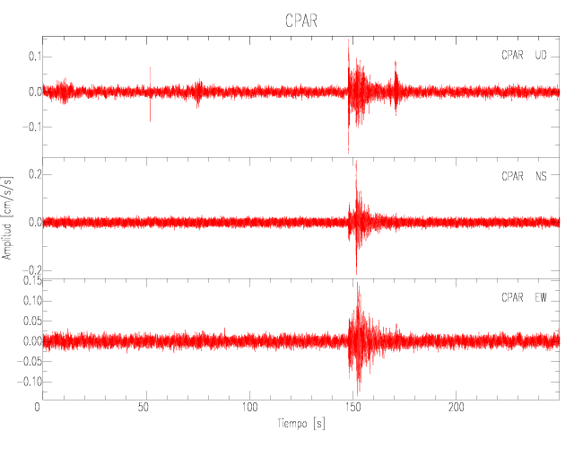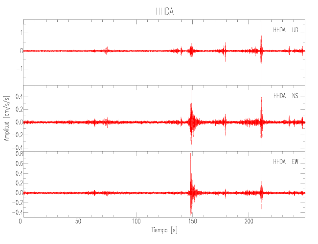 Gráficos de las componentes de aceleración para sitios con PGA > 2 cm/s2