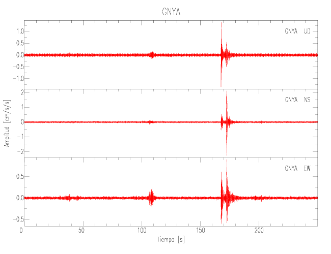 Gráficos de las componentes de aceleración para sitios con PGA > 2 cm/s2