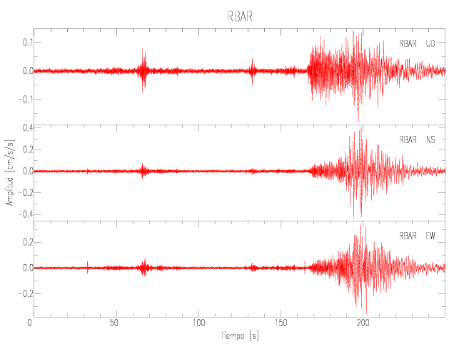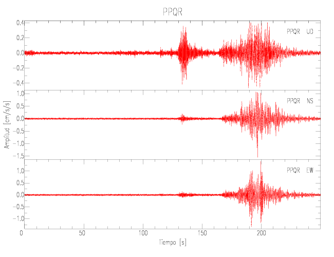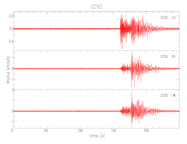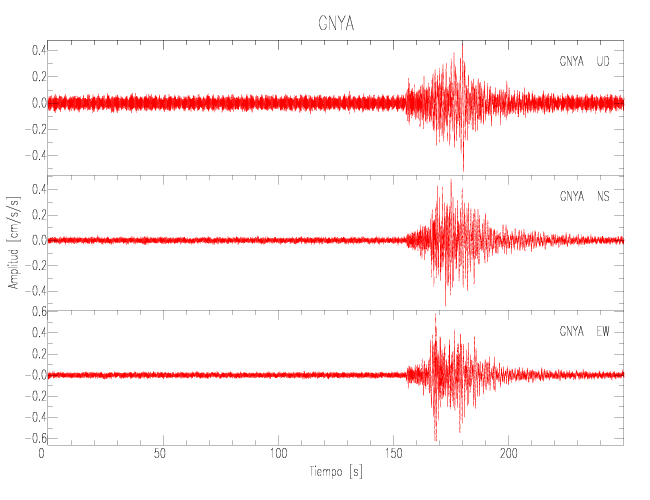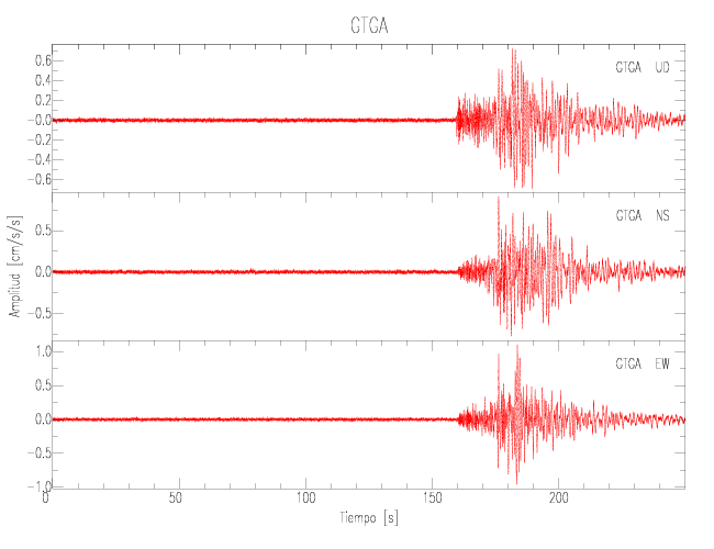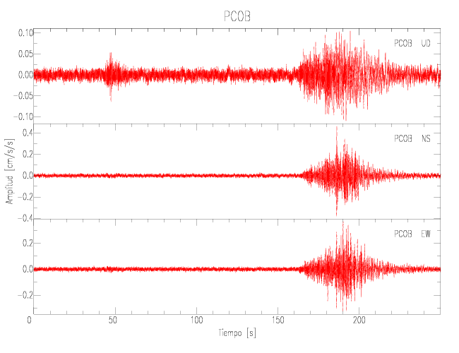 Gráficos de las componentes de aceleración para sitios con PGA > 2 cm/s2