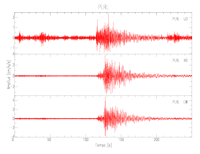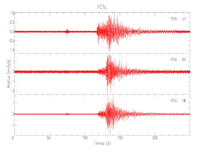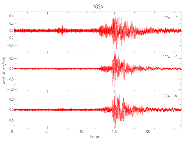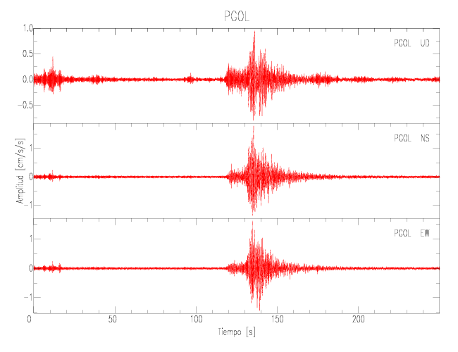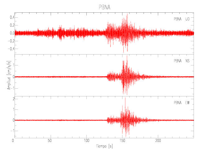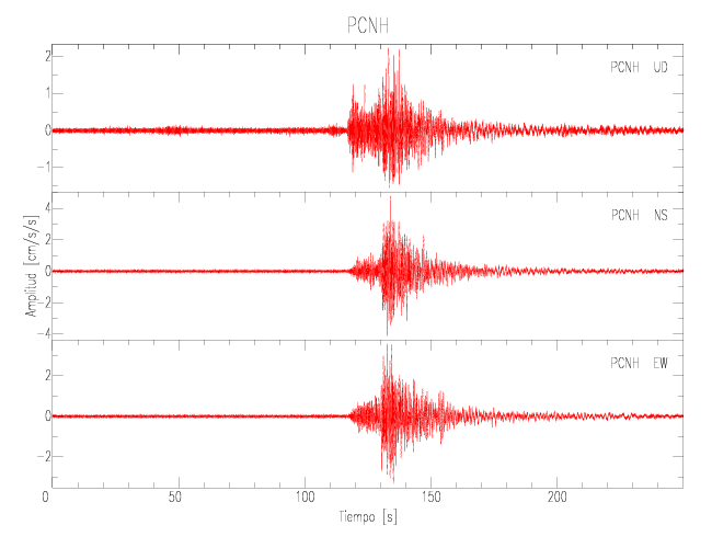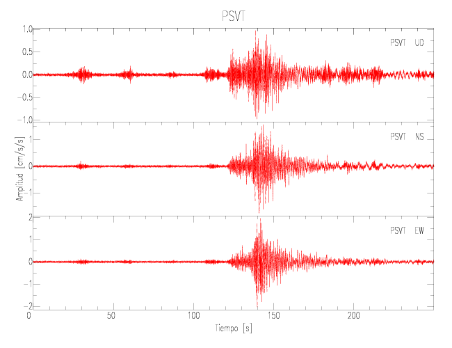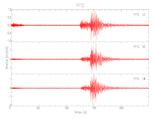 Gráficos de las componentes de aceleración para sitios con PGA > 2 cm/s2