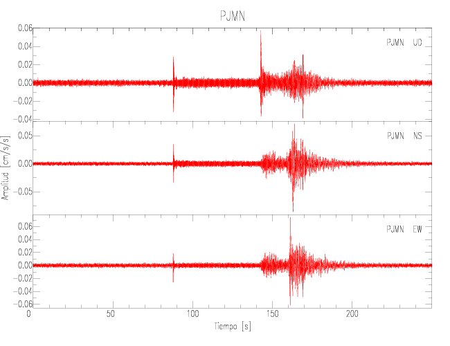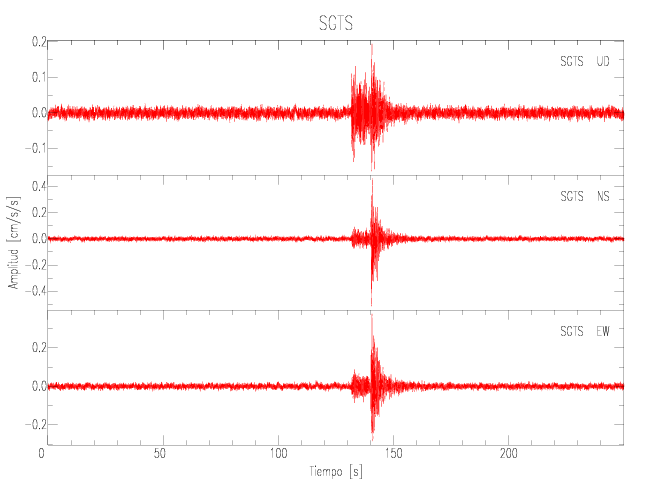 Gráficos de las componentes de aceleración para sitios con PGA > 2 cm/s2