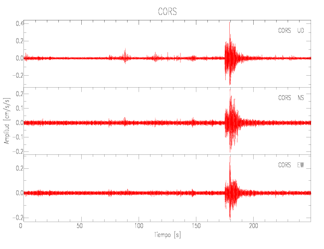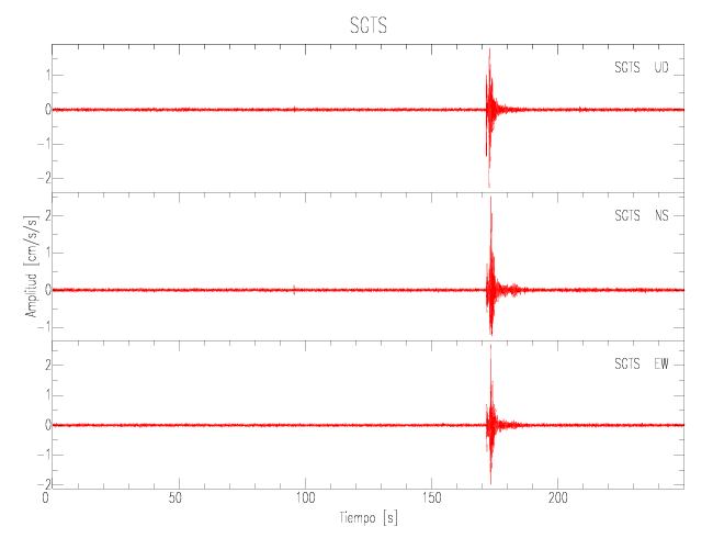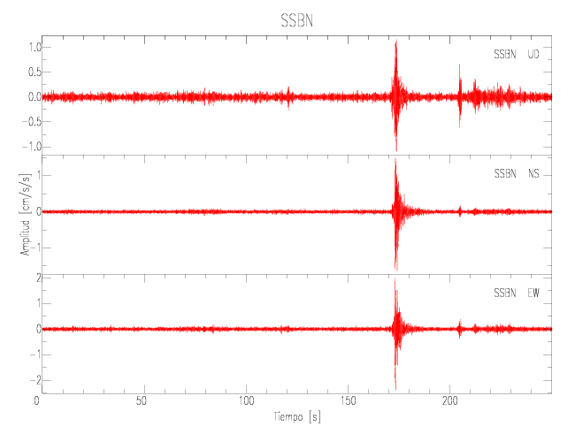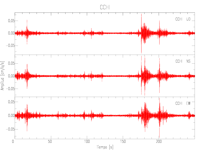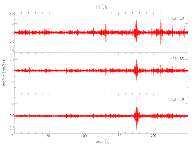 Gráficos de las componentes de aceleración para sitios con PGA > 2 cm/s2