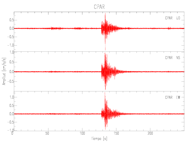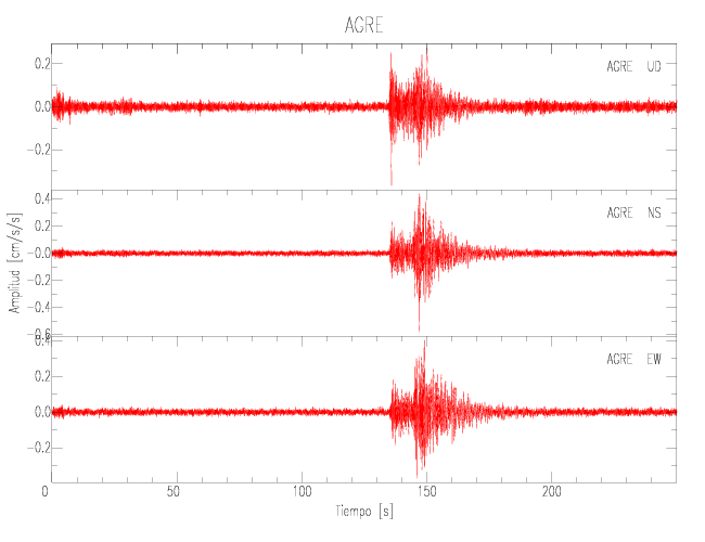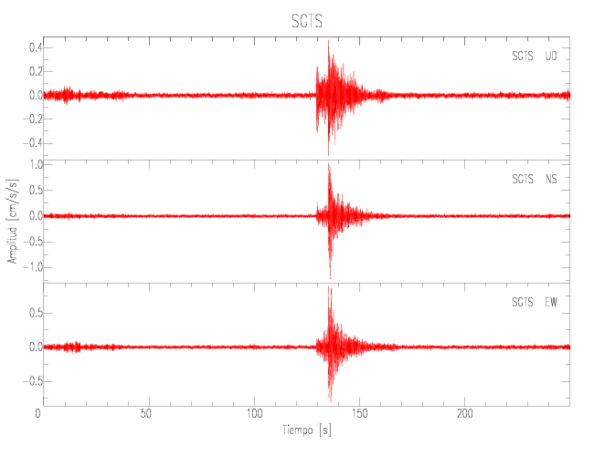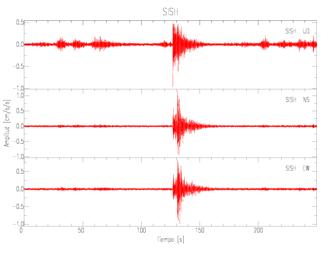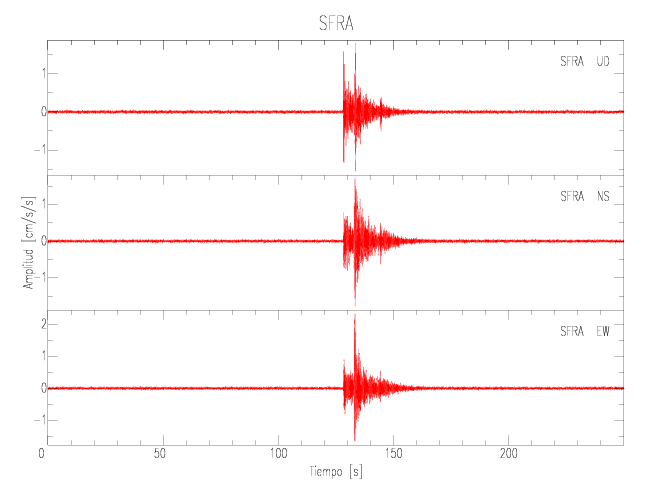 Gráficos de las componentes de aceleración para sitios con PGA > 2 cm/s2