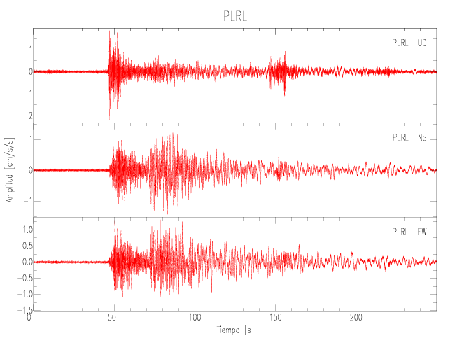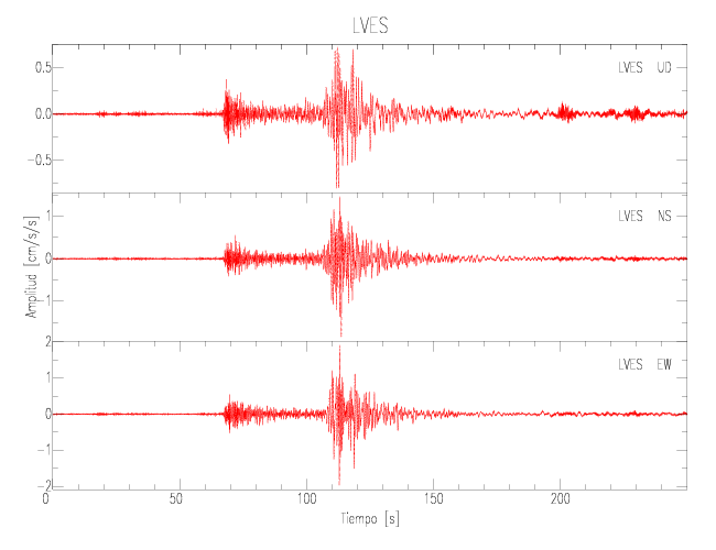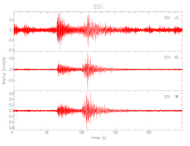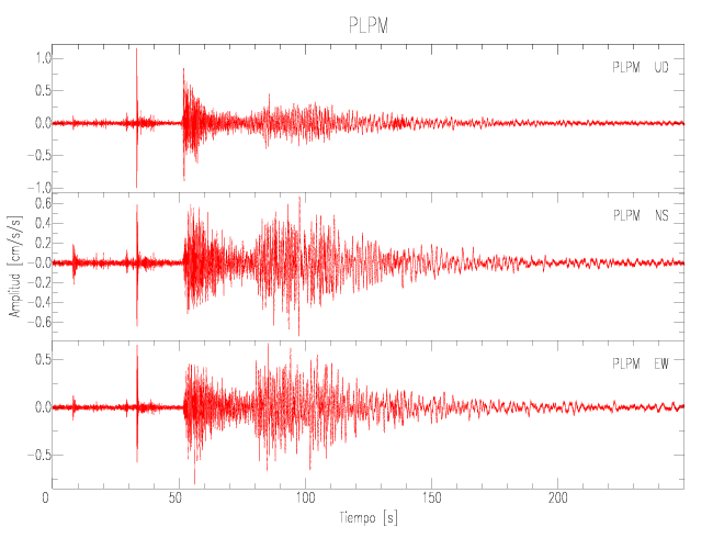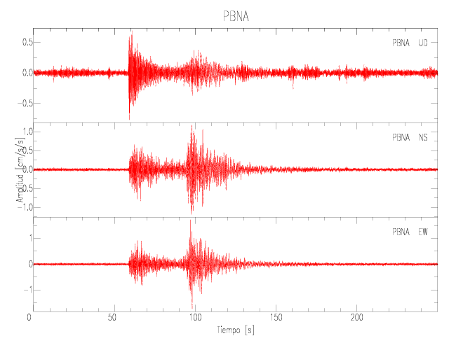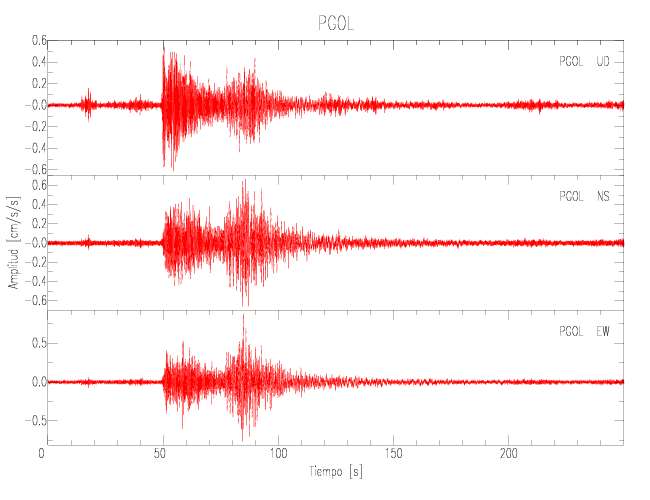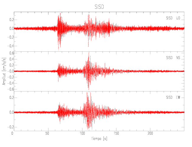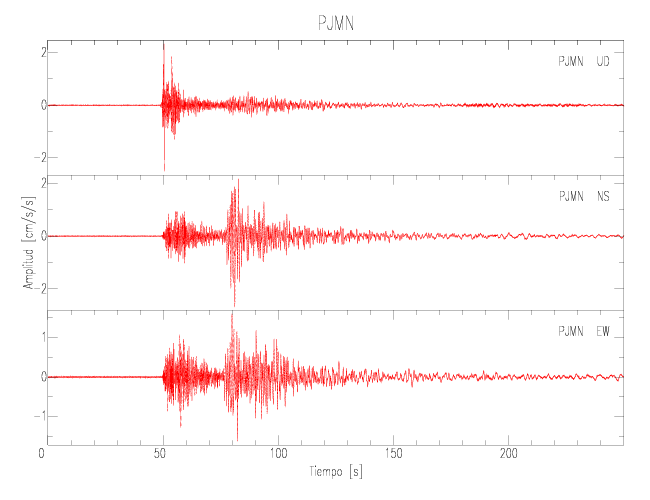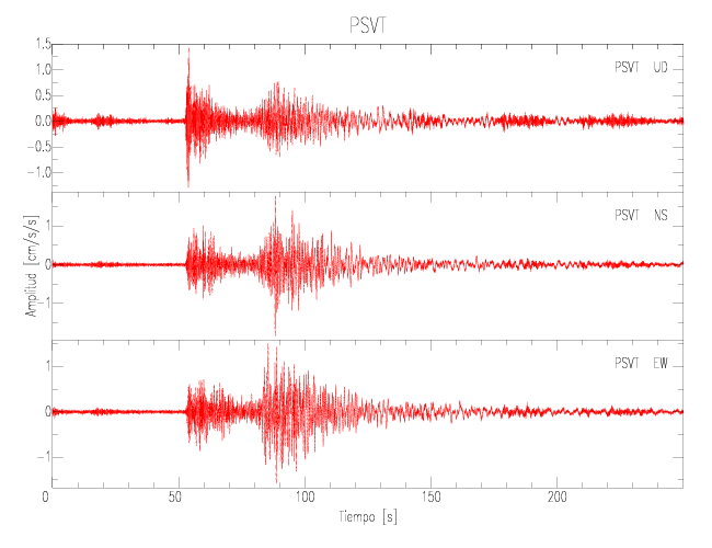 Gráficos de las componentes de aceleración para sitios con PGA > 2 cm/s2