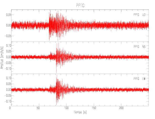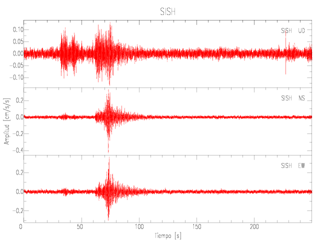 Gráficos de las componentes de aceleración para sitios con PGA > 2 cm/s2