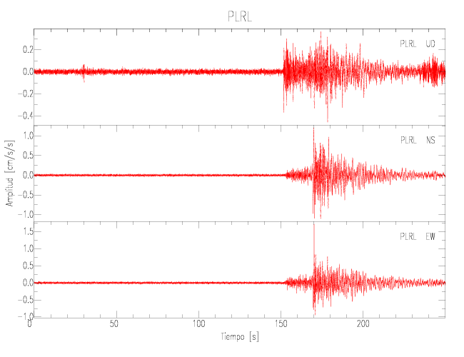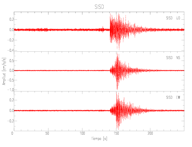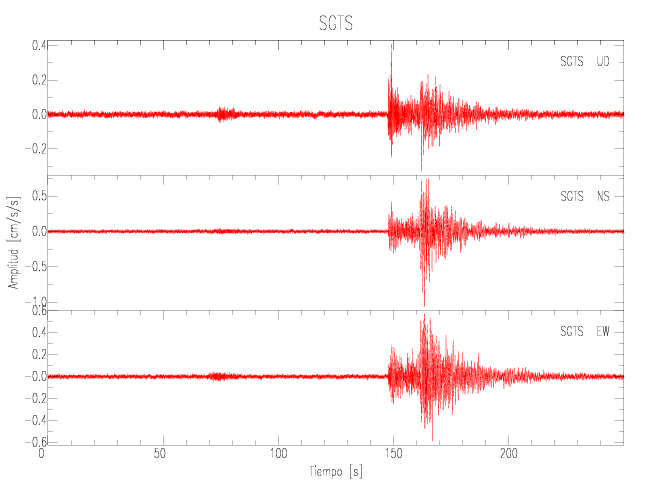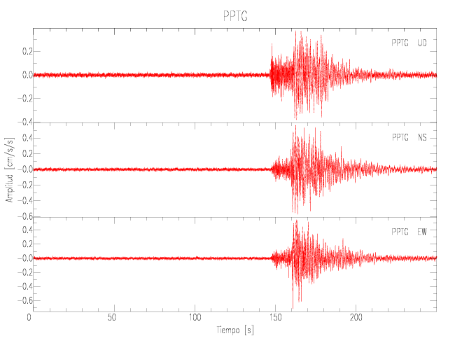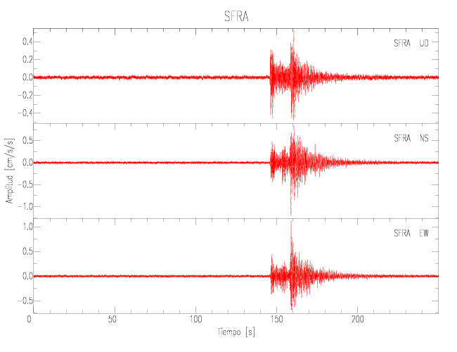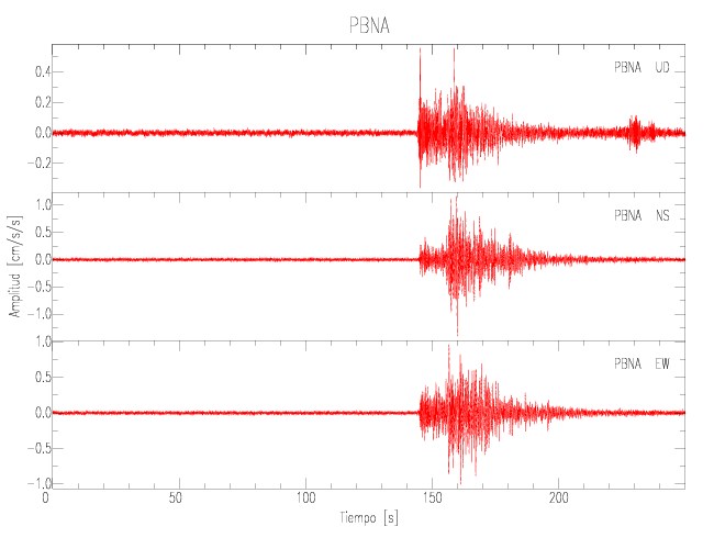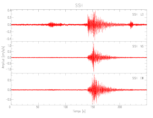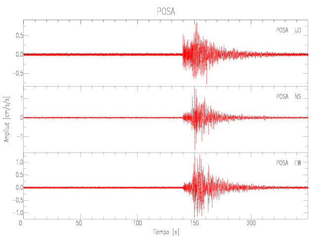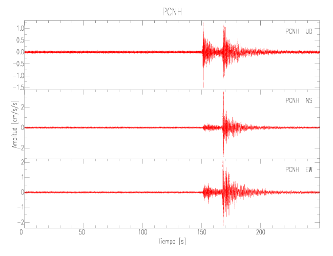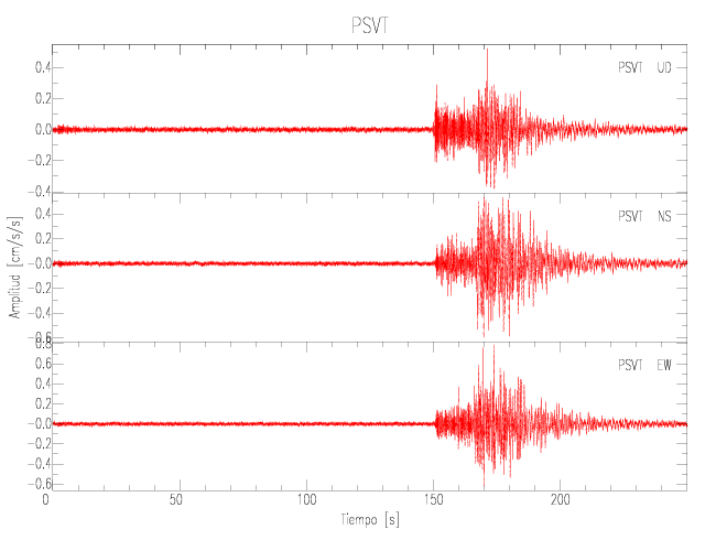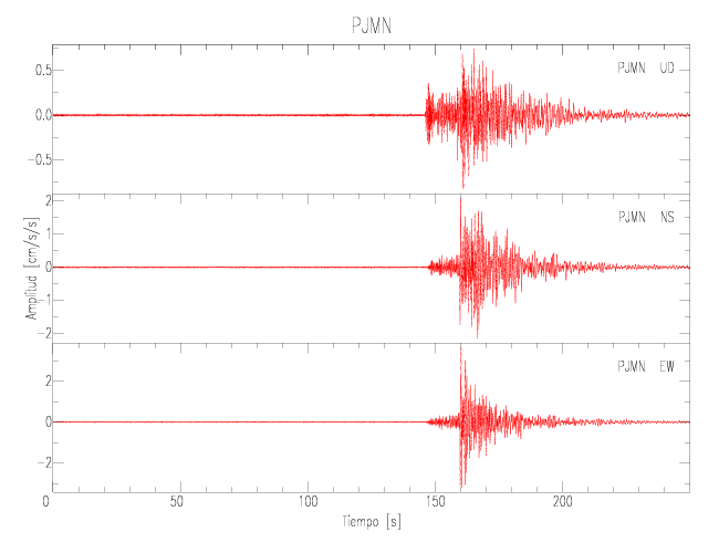 Gráficos de las componentes de aceleración para sitios con PGA > 2 cm/s2
