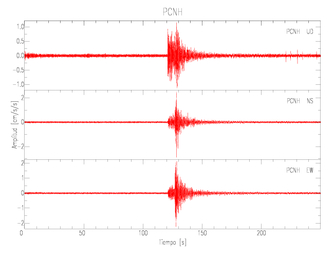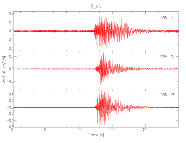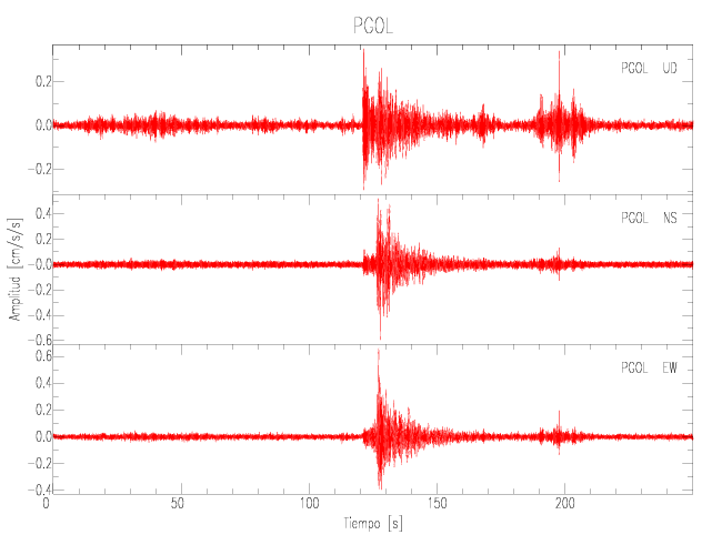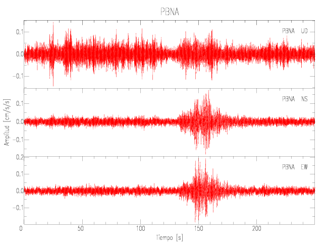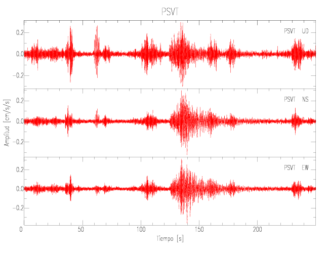 Gráficos de las componentes de aceleración para sitios con PGA > 2 cm/s2