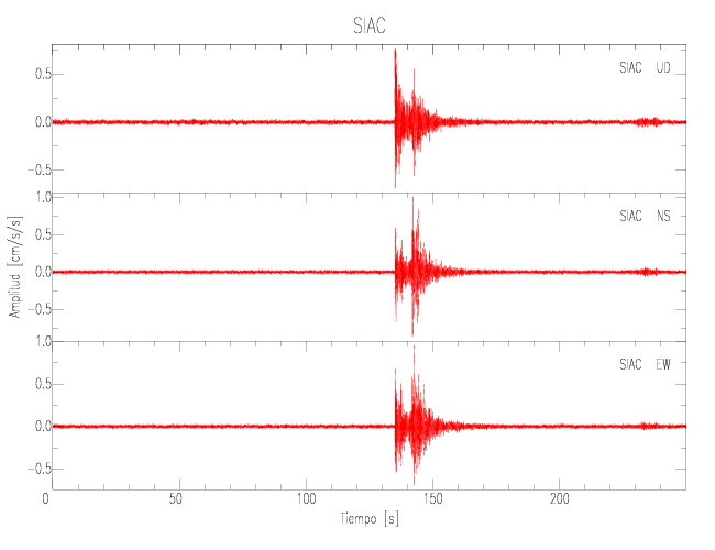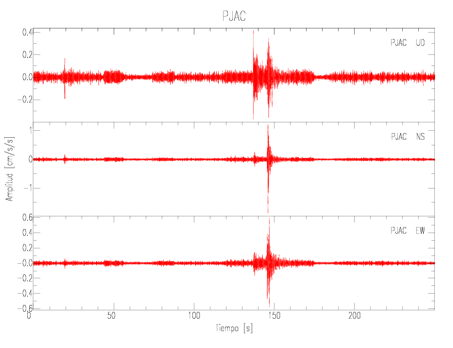 Gráficos de las componentes de aceleración para sitios con PGA > 2 cm/s2