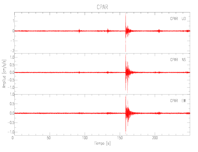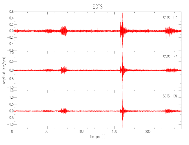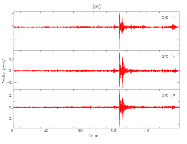 Gráficos de las componentes de aceleración para sitios con PGA > 2 cm/s2