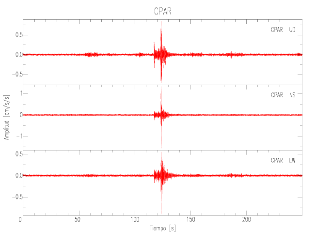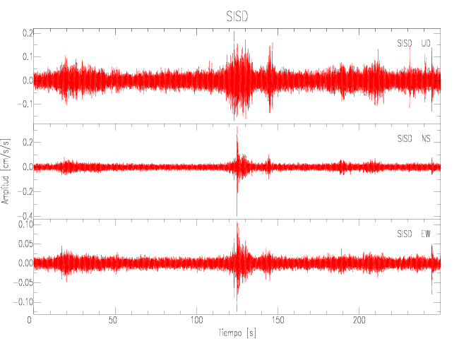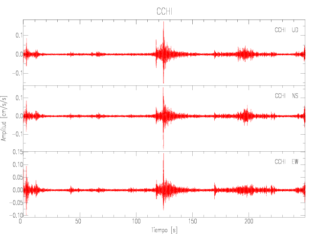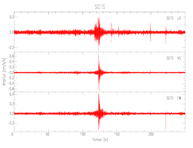 Gráficos de las componentes de aceleración para sitios con PGA > 2 cm/s2