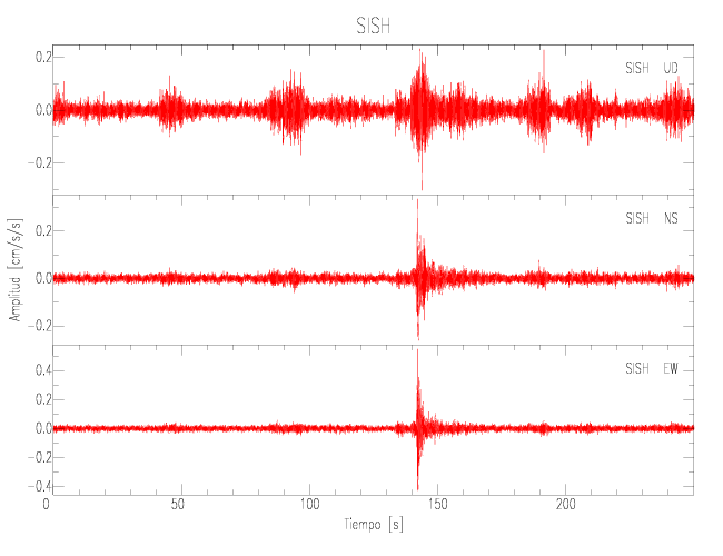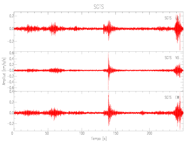 Gráficos de las componentes de aceleración para sitios con PGA > 2 cm/s2