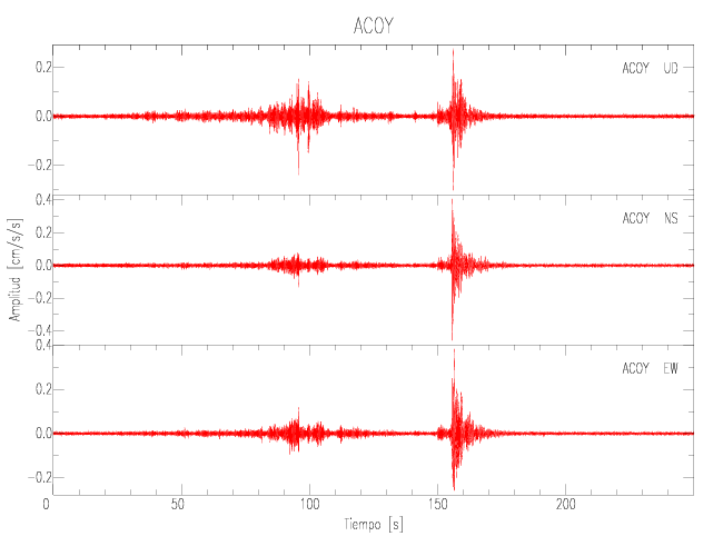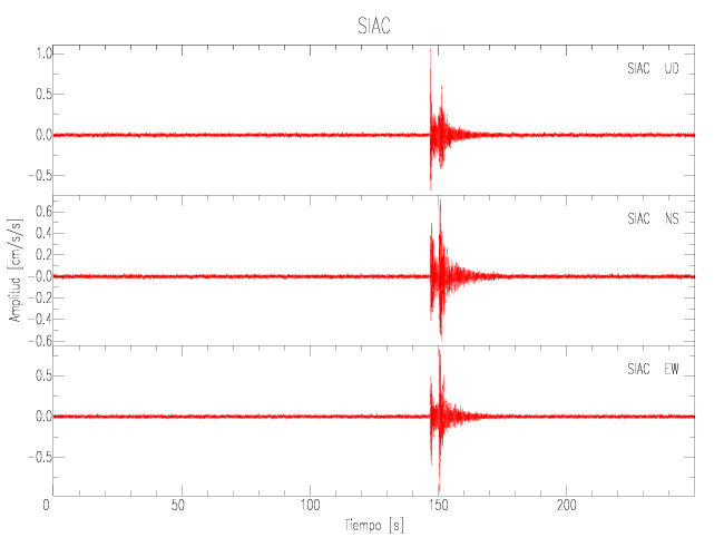 Gráficos de las componentes de aceleración para sitios con PGA > 2 cm/s2
