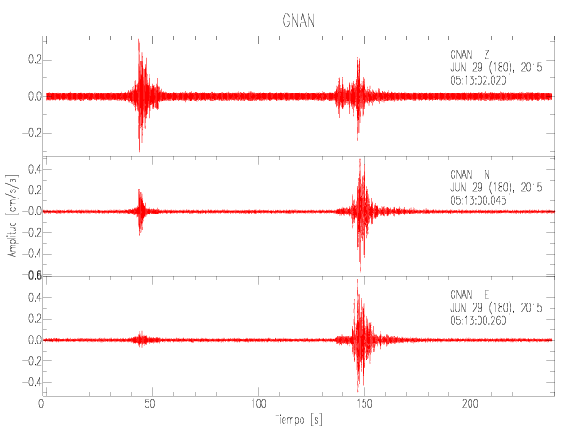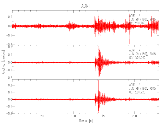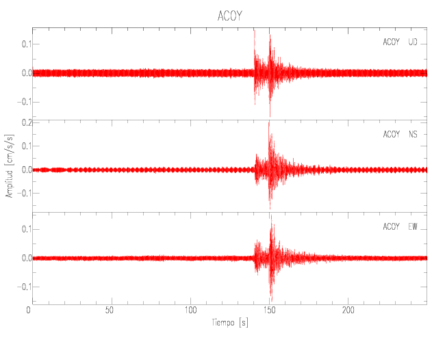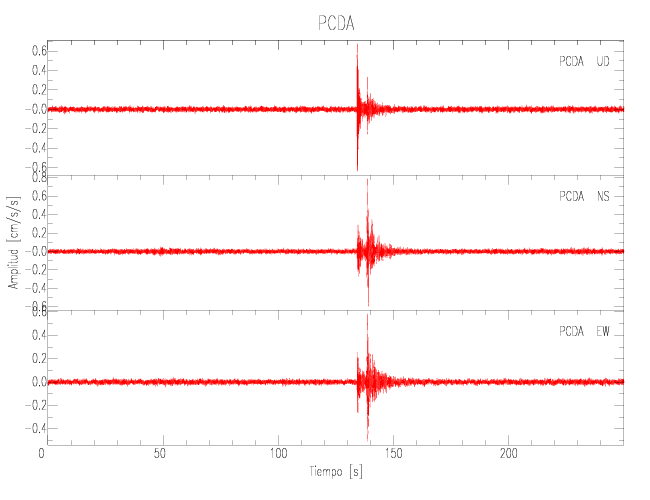 Gráficos de las componentes de aceleración para sitios con PGA > 2 cm/s2