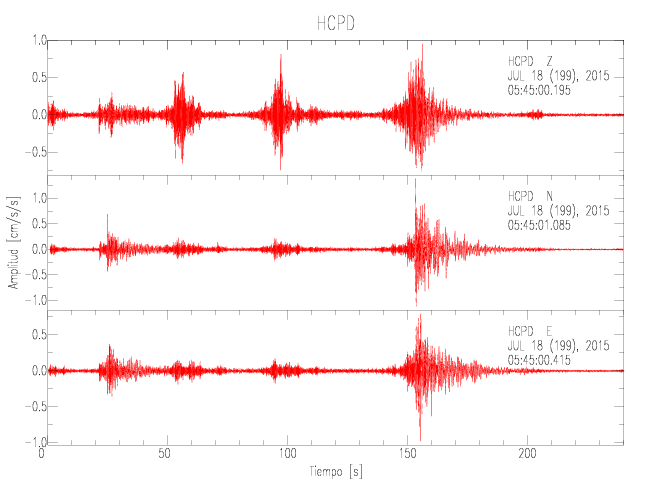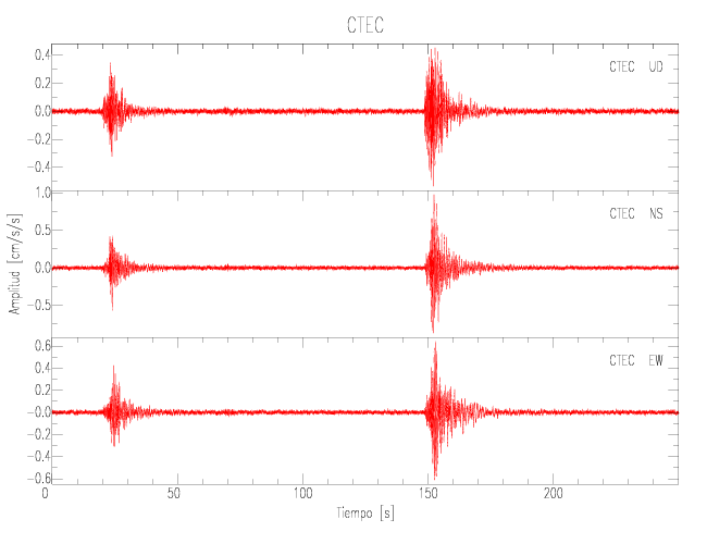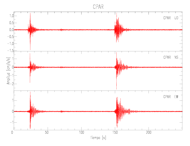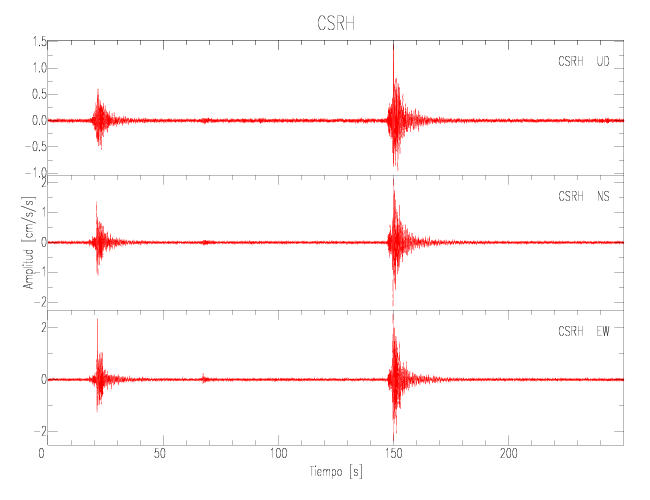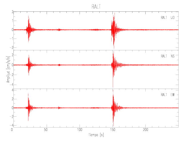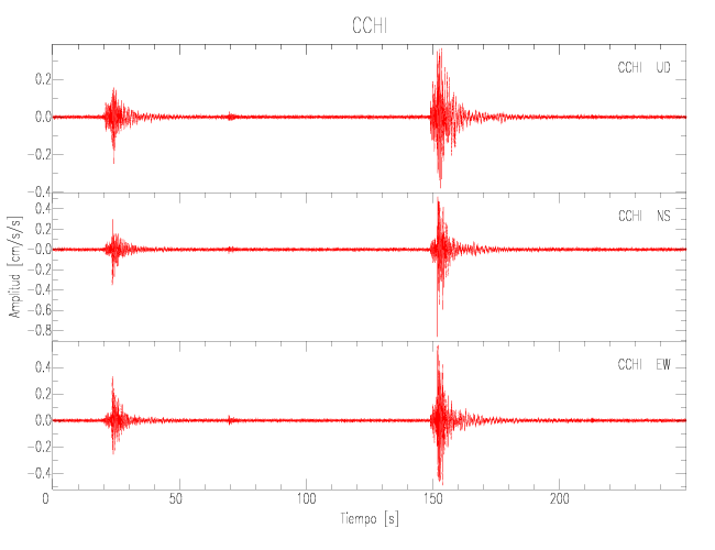 Gráficos de las componentes de aceleración para sitios con PGA > 2 cm/s2