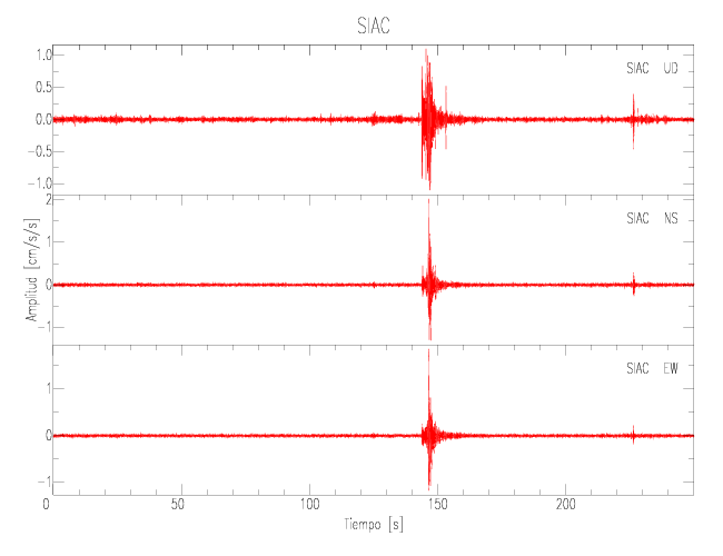 Gráficos de las componentes de aceleración para sitios con PGA > 2 cm/s2