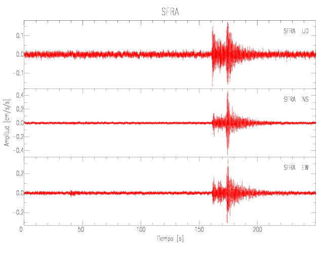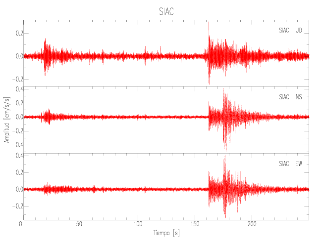 Gráficos de las componentes de aceleración para sitios con PGA > 2 cm/s2