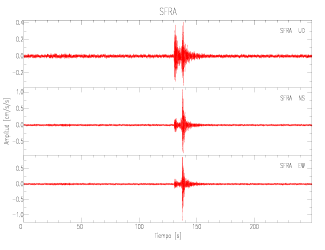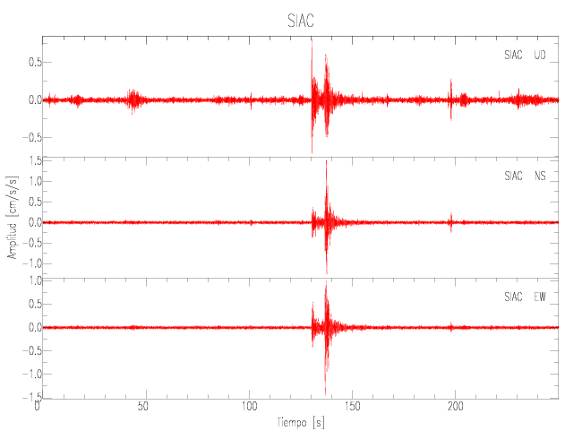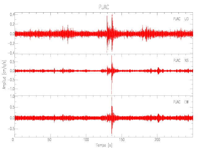 Gráficos de las componentes de aceleración para sitios con PGA > 2 cm/s2